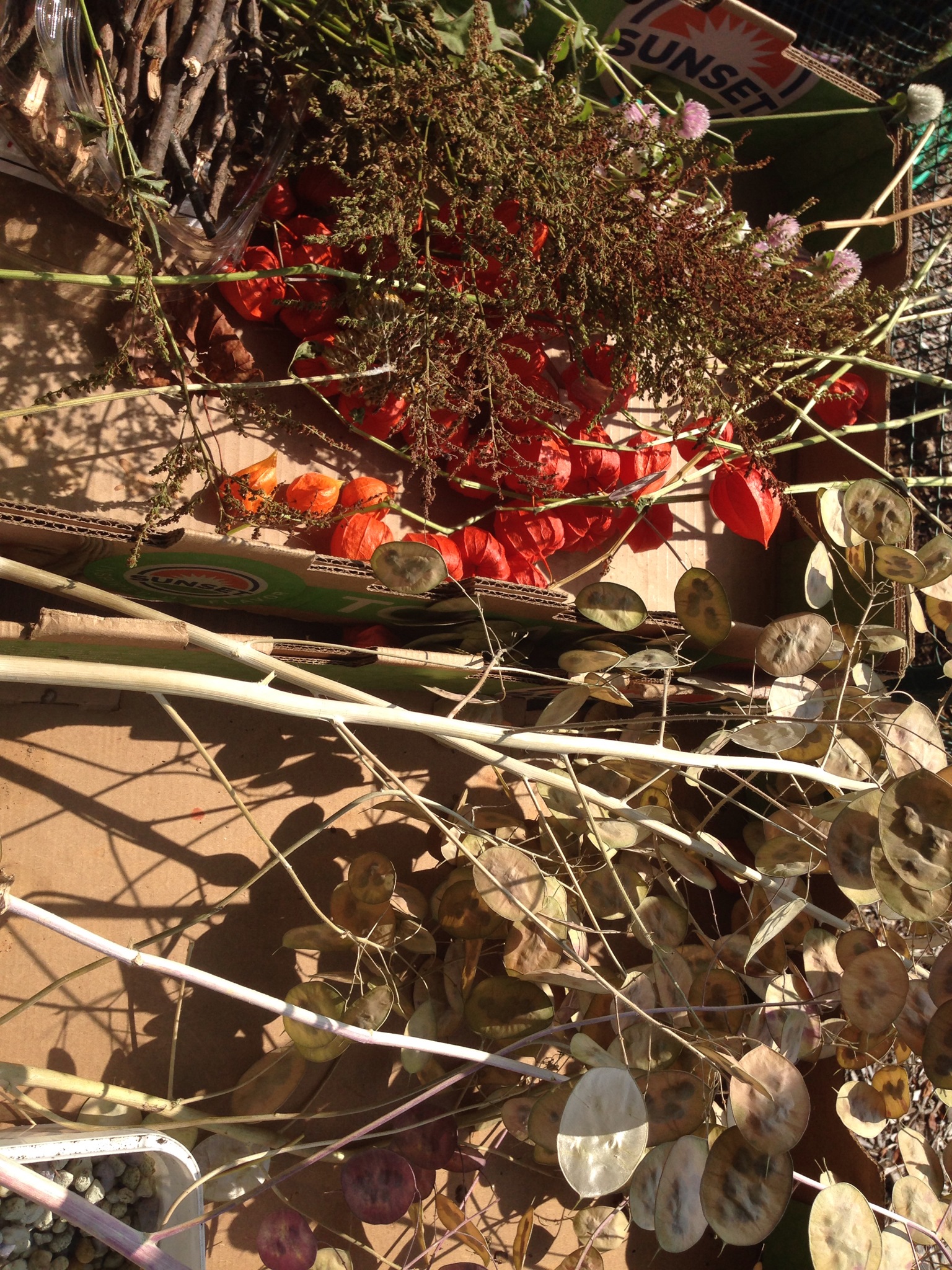 So, after nap time, we got to work. We started by locating some containers and then walked around the yard to collect materials.