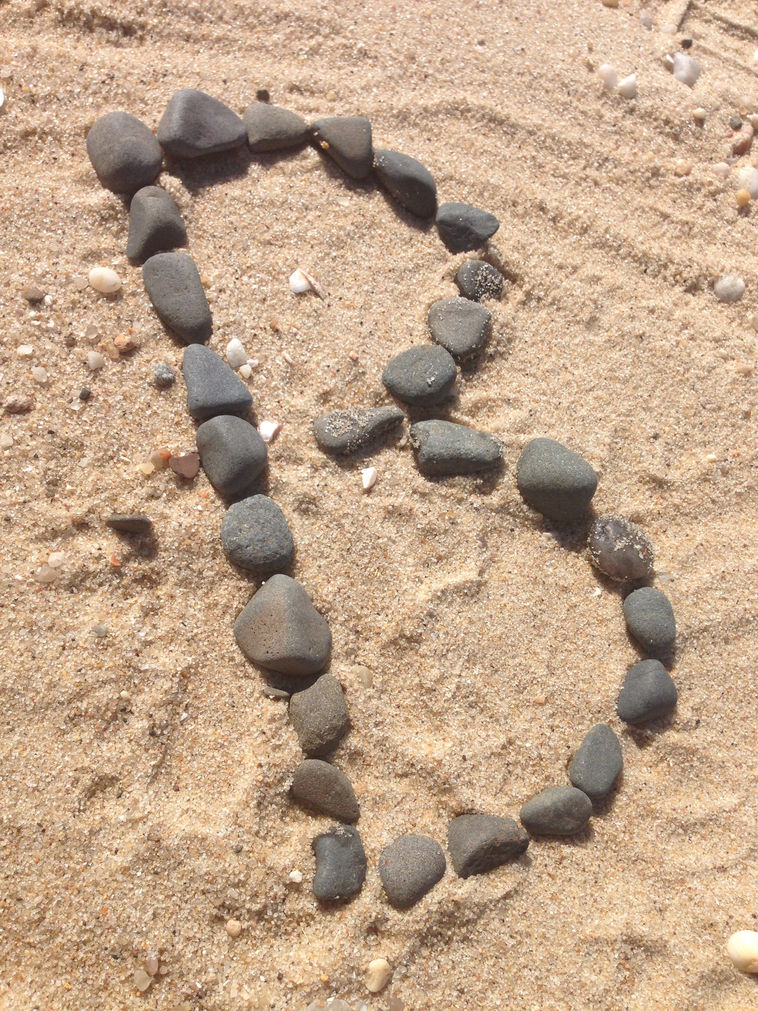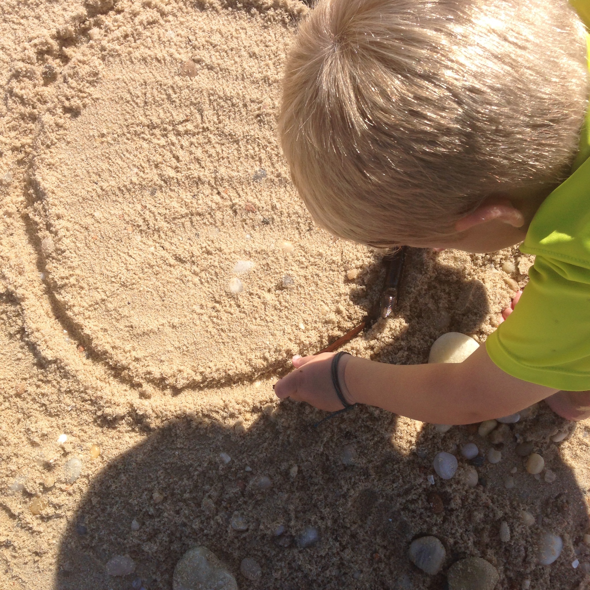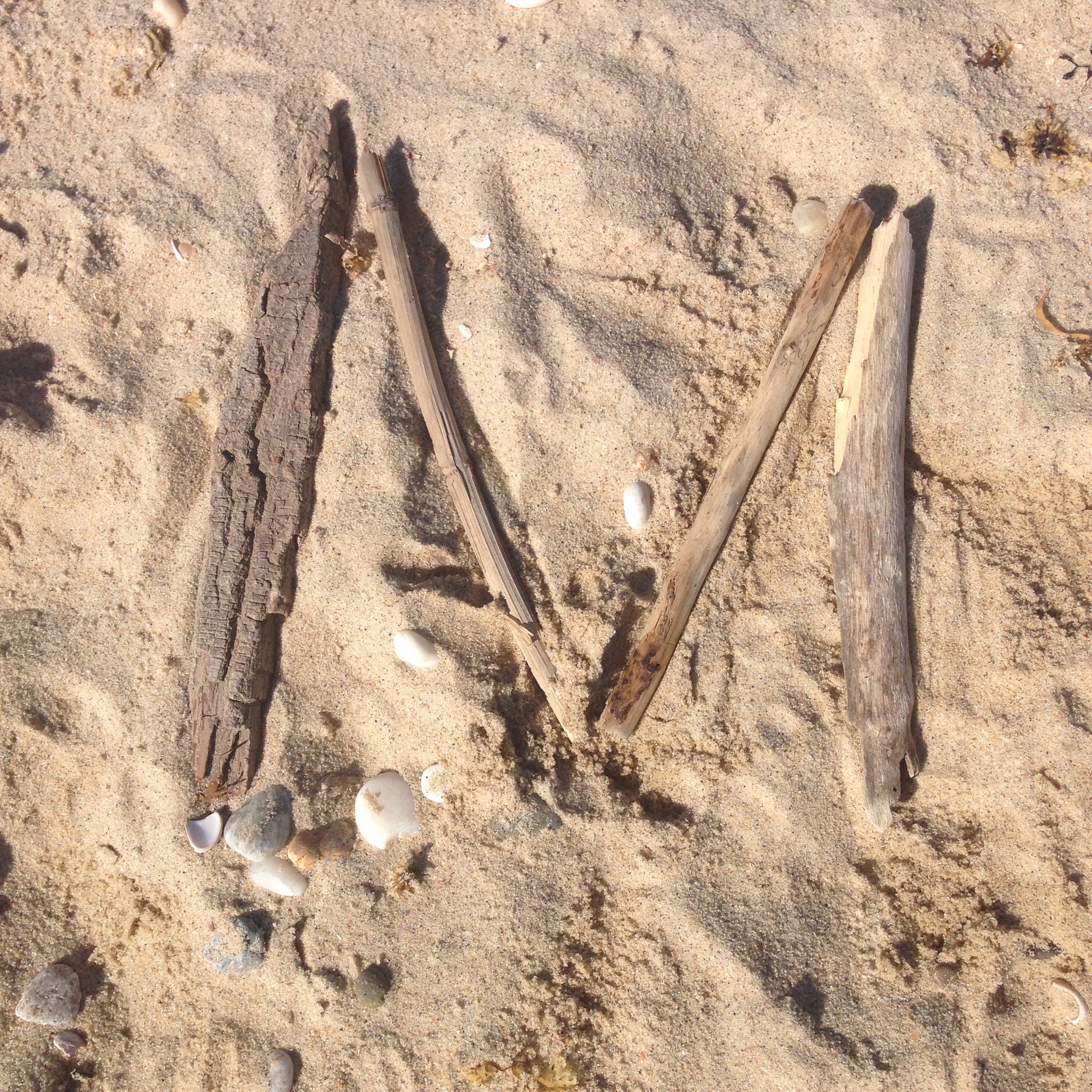 1. Digging letter shapes into the sand to be filled in by various materials (seaweed, rocks, sticks, shells, sea glass)