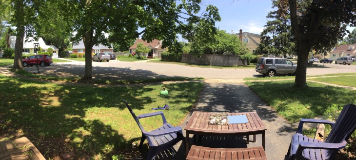 During the day, our small street is usually empty minus one elderly neighbor and us; our cross street is also relatively quiet, only a few cars pass by each hour, I’d say.