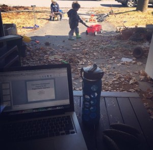 And, to be honest, this is not even always the case. I often work outside while they are playing which means I’m staring at my computer while they ride or chase or climb.